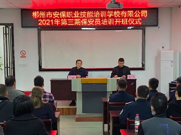 近日,郴州市保安服务有限公司培训学校开展2021年第三期保安员培训,除新入职保安员外,还有宏泰物业公司等单位报名参加了培训,参训人员共30余人。