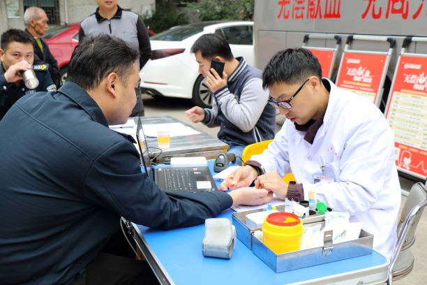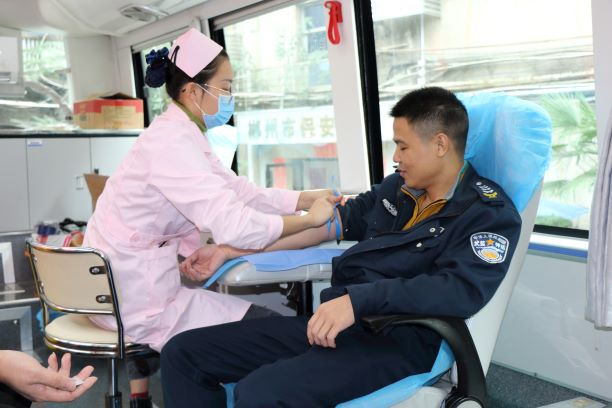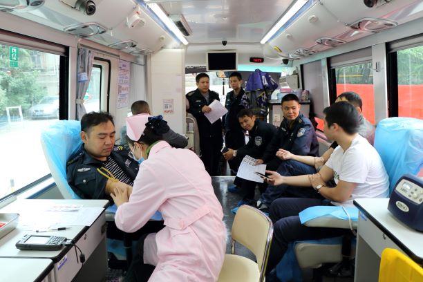 在公司下发无偿献血通知后,各守押大队队员都积极响应公司的号召踊跃报名,在忙完本职工作之余,陆续的赶到现场。在工作人员的指引下,大家有序地排队登记填表、测血压、验血、采血,他们中有的人是第一次献血,有的人则已经连续几年多次献血了,献血证上盖满了章,献血车上人流如潮、座无虚席,献血现场井然有序。