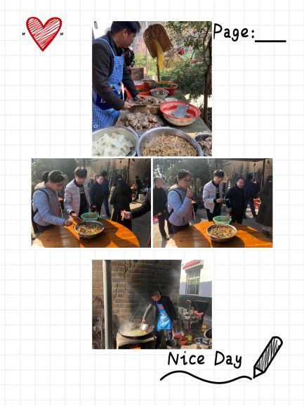 午餐开始了,大盆的美味佳肴摆上了圆桌,大家一改平时工作中的严肃认真,以茶代酒,相互祝福说笑,好不开心!