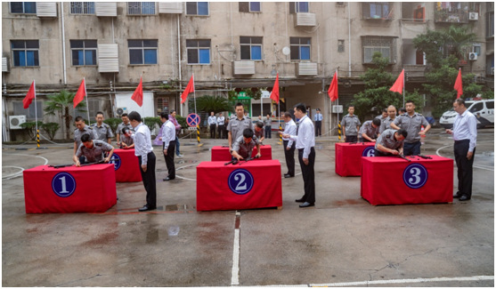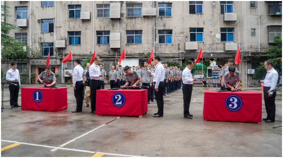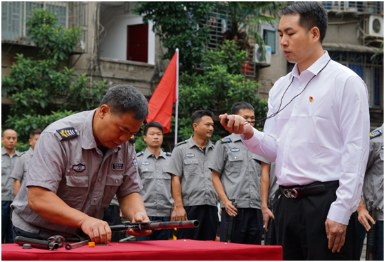 秋雨霏霏,浇不灭参赛队员高涨的热情。随着总指挥一声令下,竞赛正式开始。参赛选手们紧扣公安部《保安守护押运管理规定》和《保安武装押运服务安全操作指南》等规范要求,进行了枪支分解、消防灭火、反抢劫演练、实弹射击等应急项目竞赛。经过一个多小时的激烈角逐,安仁守押大队、邮政守押大队、永兴守押大队分别夺得团队一、二、三等奖,安仁大队刘清林获个人一等奖,邮政大队王俊、永兴大队曹桥峰获个人二等奖,安仁大队曹湘斌、邮政大队廖威、永兴大队曹连武获个人三等奖。
