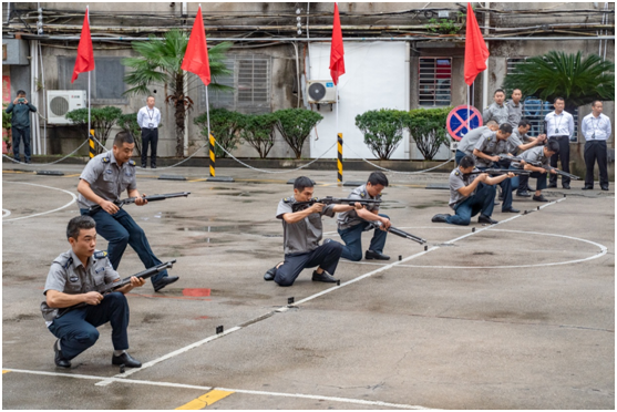 旌旗飞扬展雄风,沙场列阵秋点兵。9月27日上午,永兴集团yx08服务公司在公司操场举行2020年“百日安全大练兵”竞赛汇演汇报会,经过该公司下属15个守押大队层层选拔出来的55名选手参赛。市公安局党委委员、副局长祁永忠,郴投集团党委副书记、监事会主席李洪斌,市公安局治安支队、矿管支队及16家银行客户单位有关负责人现场观摩。