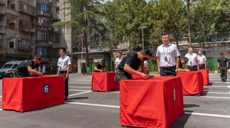 祁永忠讲话中指出,长期以来,保安公司为我市经济秩序稳定、协助公安机关维护社会治安作出了一定的贡献。下一步要继续发挥金融秩序排头兵作用,在创新中谋发展、在担当中展作为、在发展中树标杆,以此次演练汇报会为新的起点,打造高标准、高质量的保安队伍,为建设平安郴州、构筑和谐社会作出更多、更大的贡献。
