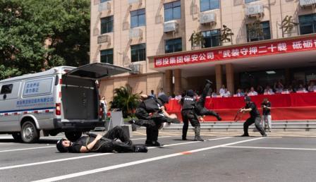 保安公司董事长陈应彬致欢迎词,回顾了公司武装守押二十年发展历程,并感谢各级领导、社会各届、客户单位、全体员工对公司的关心和支持。此次举办演练汇报会,目的是借湖南省第二届旅发大会召开和公司武装守押二十年相结合的时间点,根据公司工作性质和要求,以武装守押日常行为操作为指南,编排了系列表演和竞赛项目作演练汇报,从而进一步强化全体守押人员安全意识,按章操作的服务意识,提高处置突发事件的应变能力,展示公司良好的工作作风和品牌实力。