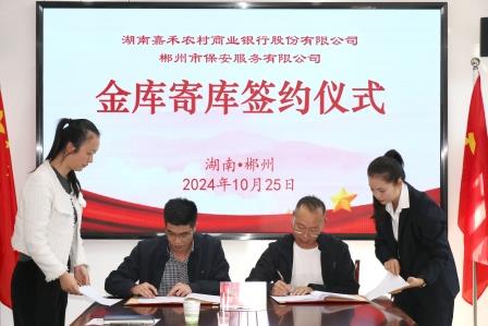 10月25日,永兴集团yx08公司和湖南嘉禾农村商业银行股份有限公司金库寄库签约仪式在保安公司举行。郴投集团党委副书记、监事会主席李洪斌出席了签约仪式。保安公司董事长谢炜民、湖南嘉禾农商银行董事长向卫平代表双方签约。