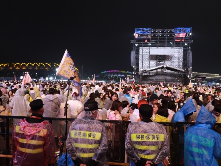 气温骤降、阴雨连连,全体安保成员克服阴雨绵绵、执勤时间长等困难,始终保持高昂斗志和饱满热情,坚守岗位、认真履职,认真落实各项安保措施,用自己的“辛苦指数”,为音乐节赢得“成功指数”,换取了观众的“安全指数”,以实际行动书写责任,诠释担当。