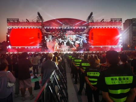 活动期间,1000多名安保精英组成11个安保区域,严格落实“定人、定岗、定责、定时”标准,织密无死角安保网络。从早上布岗到深夜散场,他们在观众区疏导人流、在舞台区严守防线、在关键区域加密巡逻,高效处置多起突发情况。广大保安人员克服高温天气、长时间执勤等各种困难,发扬吃苦耐劳的精神和敢打硬仗的顽强作风,坚持到最后。