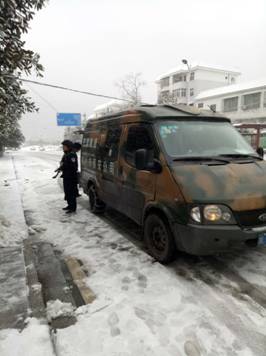 郴州市保安公司在公司领导班子的带领下,积极应对,快速反应,各级各部门员工发扬不畏严寒,无私奉献的职业精神,全身心投入到除雪防灾工作中。28日下午,公司领导部署冰雪天气安全防范工作,督促车管部加强对各大队车辆的安全管理,进行车辆安全调度,要求各大队检查押运车的防滑链,对驾驶员进行道路安全教育,积极配合客户单位开展安全检查和除雪防灾工作,除车身积雪,用铁锹铲雪开道,最大限度降低冰雪天气造成的危害;同时积极与客户单位的联系,对道路冰封的偏远乡镇网点,尽量减少车辆出车次数,确保人、车、钞、枪的绝对安全。