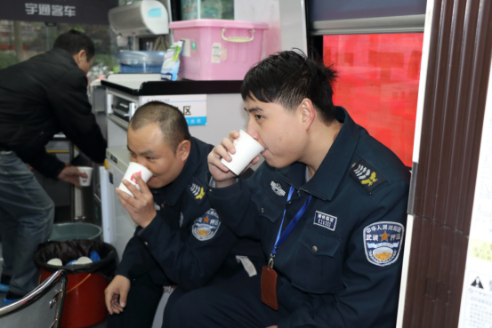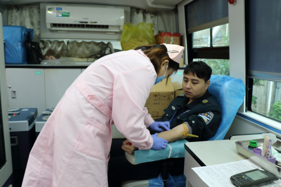寒风瑟瑟,雨中夹雪,但这并没有降低献血队员们的热情,他们不畏严寒,早早地来到了公司本部活动现场,等待着参与献血活动。在献血活动队伍中,既有基层大队守押队员,也有本部行政管理人员。大家在医务人员引导下,有序进行登记、填表、测血型,等检测结果通过后再进行采血。医务人员给每个献血队员都准备了热腾腾的牛奶和蛋糕,让他们适当地补充些能量。在献血过程中,大家都表示,无偿献血既是一种责任,也是一种义务,只要身体条件允许,就会坚持不懈参加这项公益活动,以自己的实际行动将这份爱心传递下去,用行动诠释了大爱无疆,无私奉献的精神。他们有的刚完成守押工作,下班立刻赶到献血现场,有的献完血又立即回到工作岗位继续工作,还有的队员每年都坚持献一次血,有的年龄稍大、身体不适的队员都来参加献血活动最后因条件与自身情况没能献血,但这种爱心奉献、积极参与精神值得肯定、赞扬。
